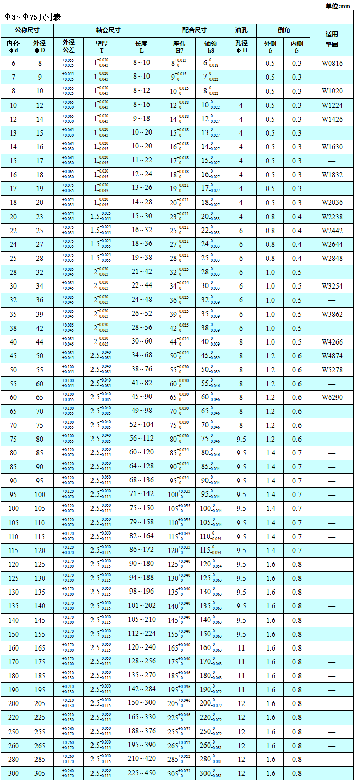 FZF02MB*直形軸套壁厚公差范圍(裝配后內徑二次加工)
