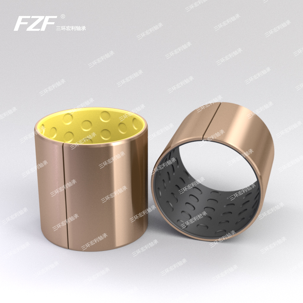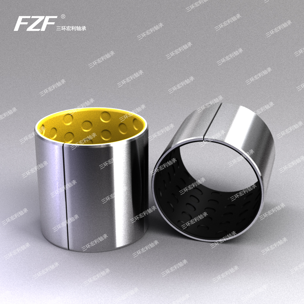 FZF02邊界潤滑軸承(國外稱DX)是以優質低碳鋼板或青銅板為基體,中間燒結多孔球形青銅粉,摩擦表層軋制改性聚甲醛(POM和Pb),并通過高溫塑化牢固結合為一體的三層邊界潤滑軸承材料(也稱預潤滑軸承材料),經卷制而成的滑動軸承。該材料能提供較好的承載性和耐磨損性,摩擦表層設有儲油坑,在有少量潤滑介質存在時,其性能優于其它多種滑動軸承材料。產品適用于常溫條件下工作和中(重)載、低速的場合,以取代傳統的銅套,即降低成本又延長使用壽命。FZF02邊界潤滑軸承分為鋼基(FZF021)和銅基(FZF022)兩種。